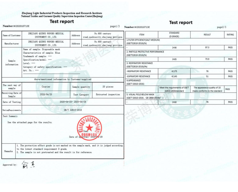 顆粒物防護(hù)口罩檢驗(yàn)報(bào)告
