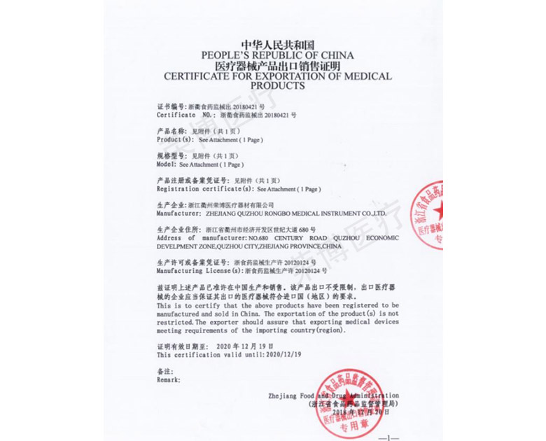 醫(yī)療器械產(chǎn)品出口銷售證明